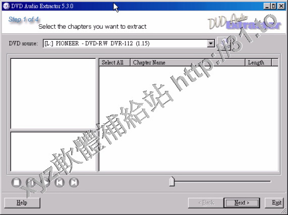 該程式可以幫助你從DVD光碟上提取音頻的軟體,它能幫助你從喜歡的DVD上提取音樂片斷並且